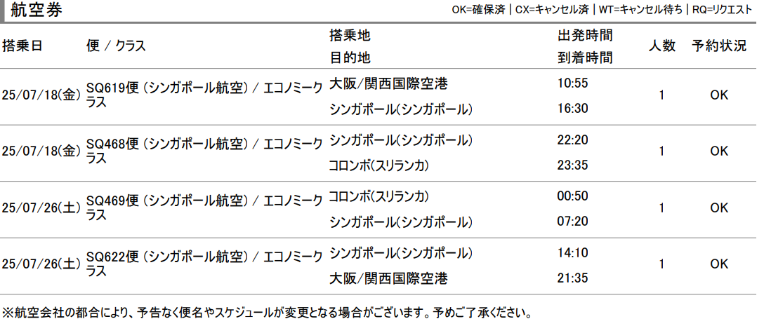 何故?スリランカ航空にせずに、シンガポール航空にしたのか?
